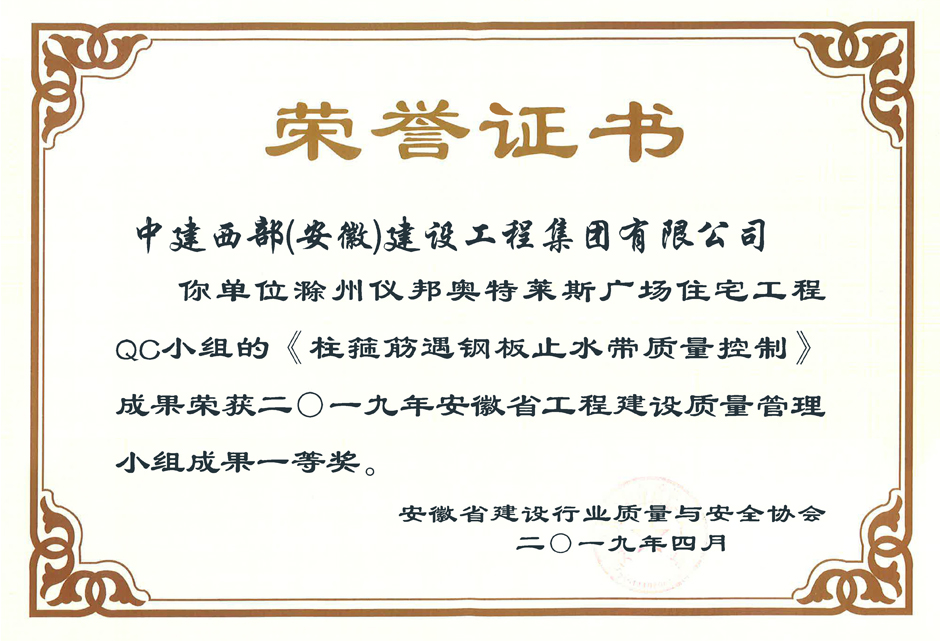 QC小组《柱箍筋遇钢板止水带质量控制》省级一等奖