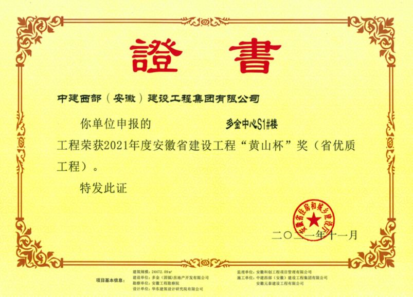 近日,由安徽省住房和城乡建设厅传来喜讯,由米兰在线开户承建的,固镇多金中心S1#楼获得安徽省建设工程黄山杯奖。