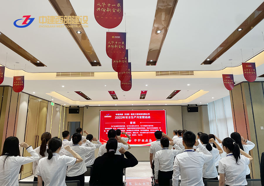 米兰在线开户集团本部率先开展了安全生产月集中宣誓活动。首先分管安全副总经理祝席海部署安全生产月活动各项工作,阐述了国家推行“安全生产月”的意义与目的,强调了安全生产的重要性。随后全员观看主题宣教片《防为上》。最后由总经理王越带领全员进行安全宣誓。通过此次活动,进一步提升全员安全意识、树牢安全发展理念、落实安全生产责任,推动企业安全文化建设。