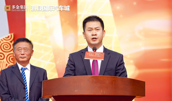 安徽汽车经销商商会党支部书记李新广先生作为特邀嘉宾上台致辞,表示汽车行业是一个持续蓬勃发展的产业,“多金·泗县国际汽车城”以前瞻的战略眼光,顺应行业发展趋势打造“一站式”汽车产业新平台,希望以此能够带动区域汽车行业发展。